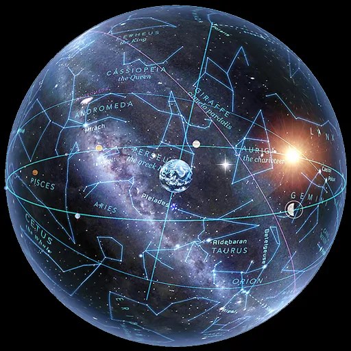 And so, everything is mapped on a spherical model that pretends the night sky is a finite globe, inside which the Earth hovers like a bubble.