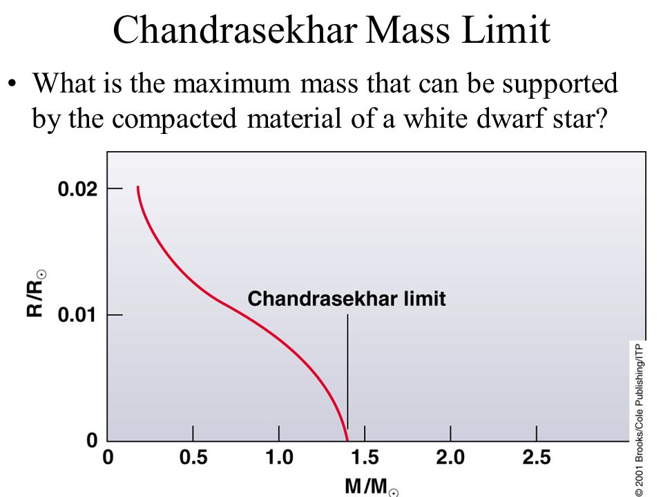 That suggests that there is actually a mass limit on white dwarfs. Stars over 1.4 M☉ (solar masses) cannot become white dwarfs.