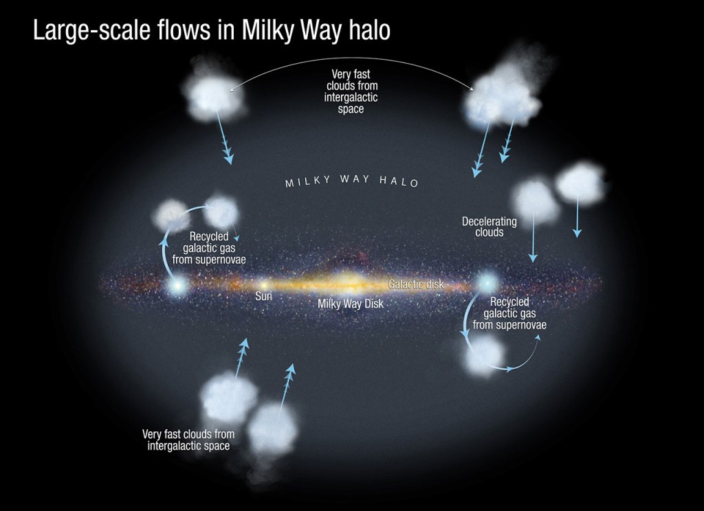 Clouds and star clusters — such as globular clusters — would have formed outside the galaxy, at different times, and drifted into the Milky Way’s gravitational influence. They would have been absorbed into the galaxy.