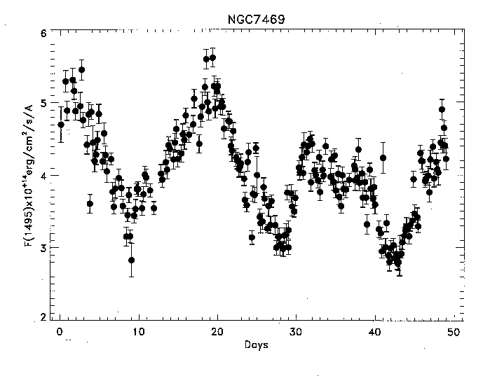 This is data from galaxy NGC 7469. This is not a spectrum. This is a light curve: a graph of the intensity of light from the object over time.
