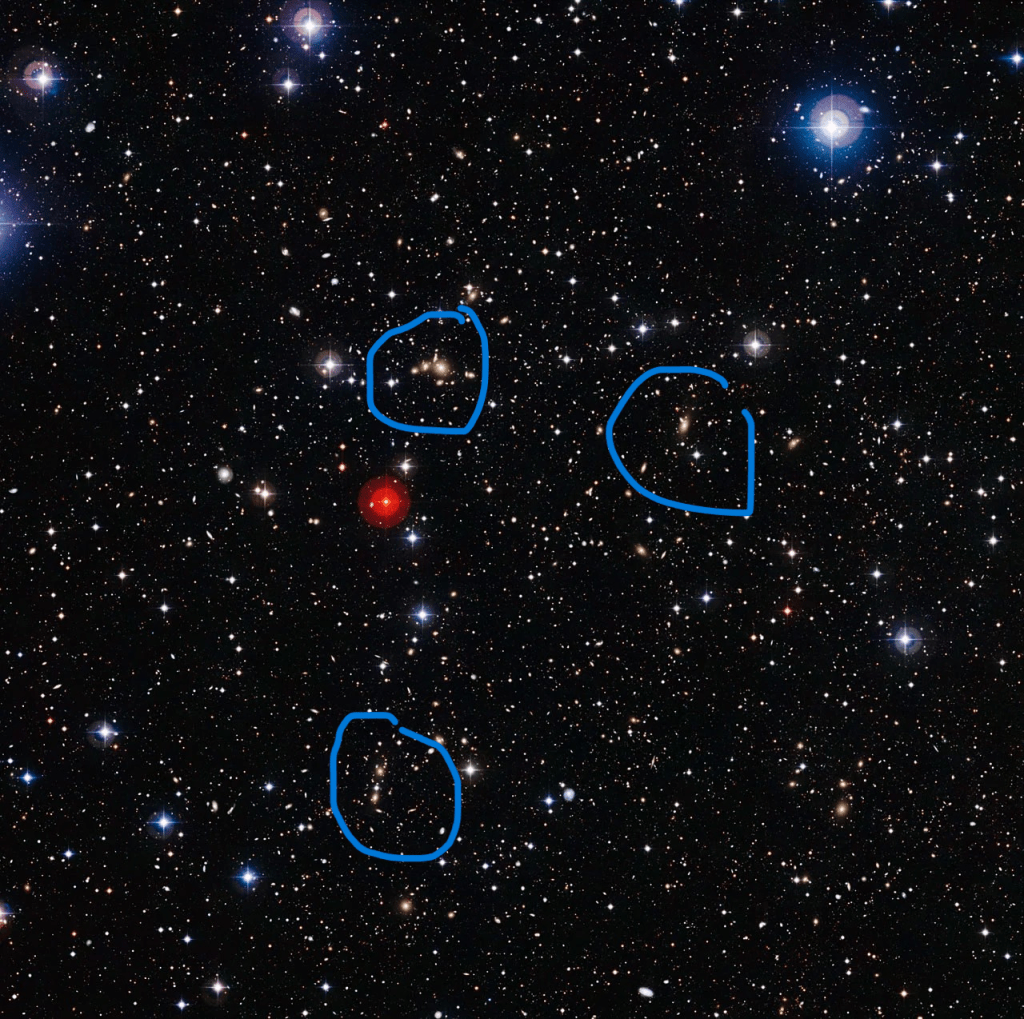 I promise, there are individual galaxy clusters here — they’re just extremely zoomed-out. Here, I’ve marked them: