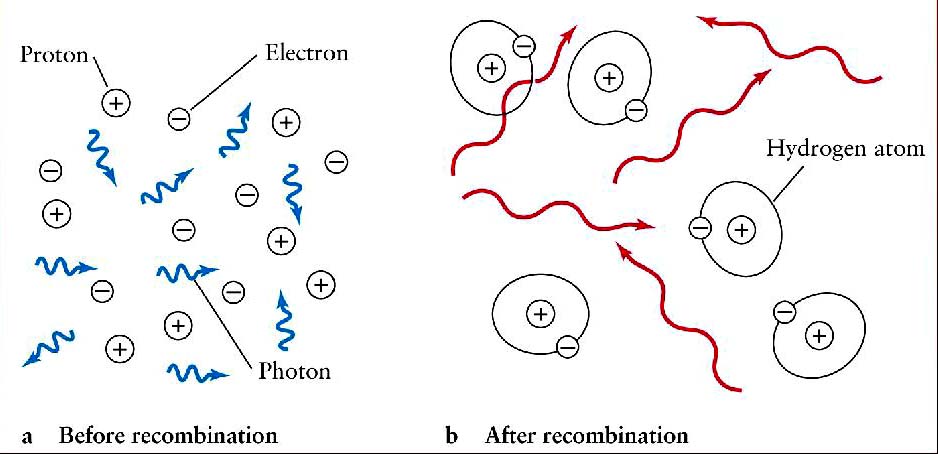 As you may remember, the CMB is the afterglow from recombination: the moment when the universe’s temperature cooled enough for protons to capture and hold free electrons, forming the first proper atoms.