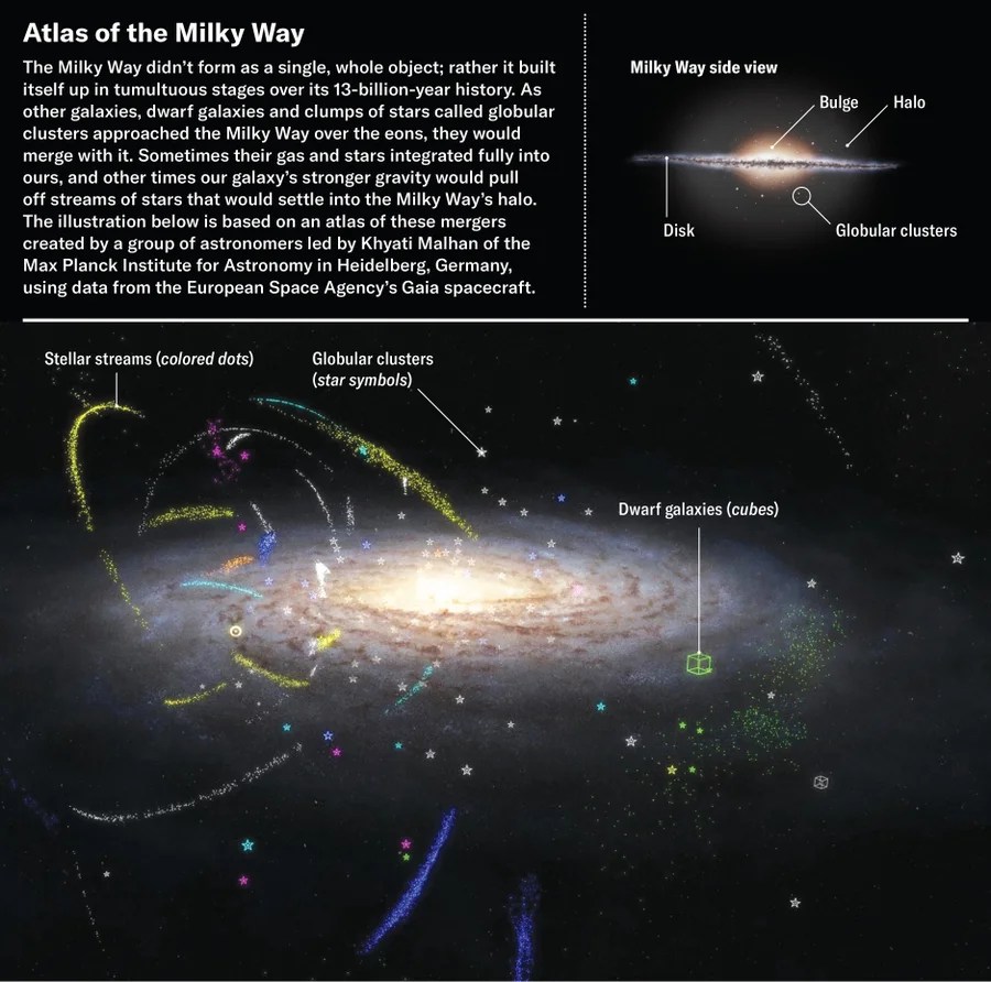 Above, you see our home galaxy, the Milky Way. But it’s not a single, solid object, and it didn’t form as one. It’s a mishmash of material that’s fallen into its gravitational pull over billions of years.