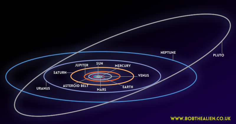 For one thing, Pluto orbits ridiculously far out. Its average distance from the sun is about 39.5 AU (1 AU, or astronomical unit, is Earth’s distance from the sun) or 5.9 billion km.